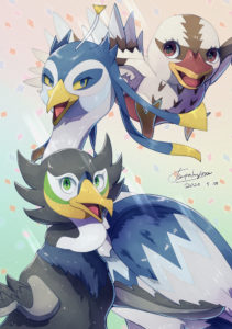 アオちゃん[中央]とウッちゃん[左]は2桁年前に考えた大昔のキャラを手直ししたもので、その後にガー子ちゃん[右]が今年誕生しました。ひとまずこの3体で話を考えたりイラストを制作したりしていこうと思っています。