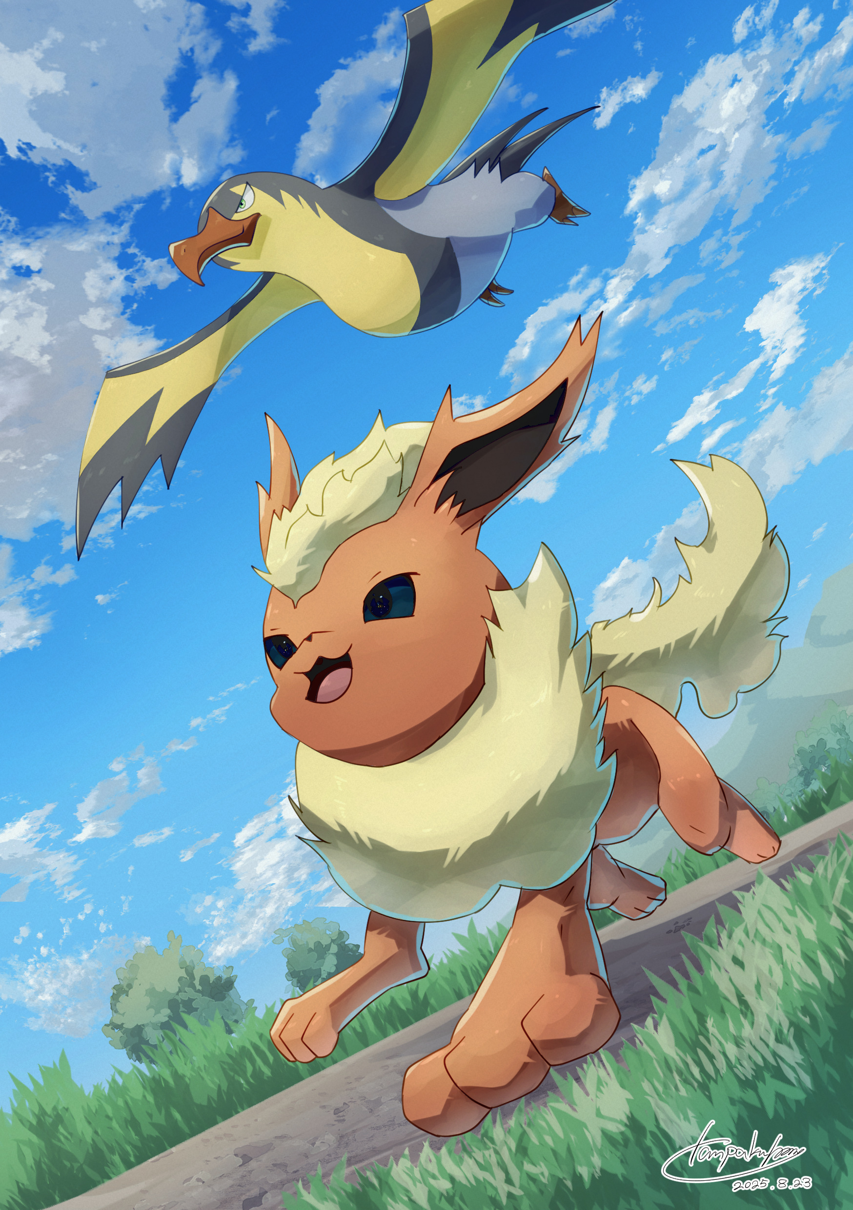 恐らく唯一無二の組み合わせ。我が家のスカーレットでの旅パの2匹なので自分の中ではイメージが固まっている。旅パは人それぞれだから組み合わせとかCPはいろいろ考えられるし、適当に入れておいたメンツがそのまま愛着に繋がった、なんてことも起こりうる。実際ブースターも助っ人でゲーム後半に炎枠が欲しかったからという理由で採用してからお気に入りになったキャラの1体。タイカイデンは序盤鳥枠がそのまま活躍してくれたのでスタメンとして採用になった。